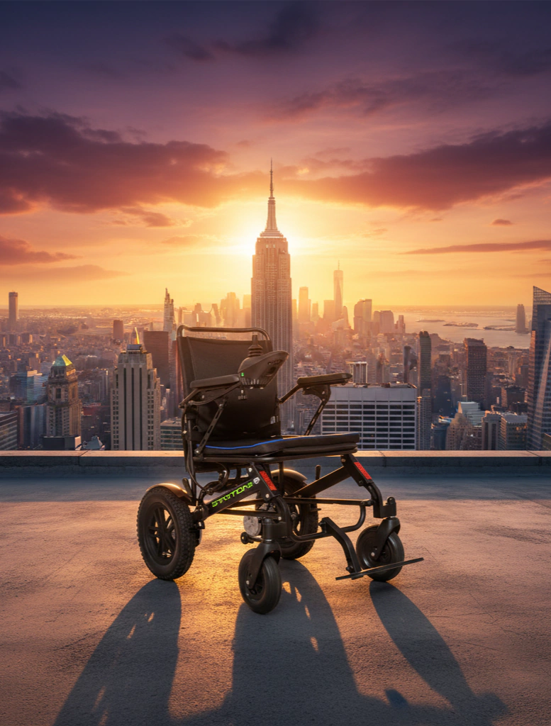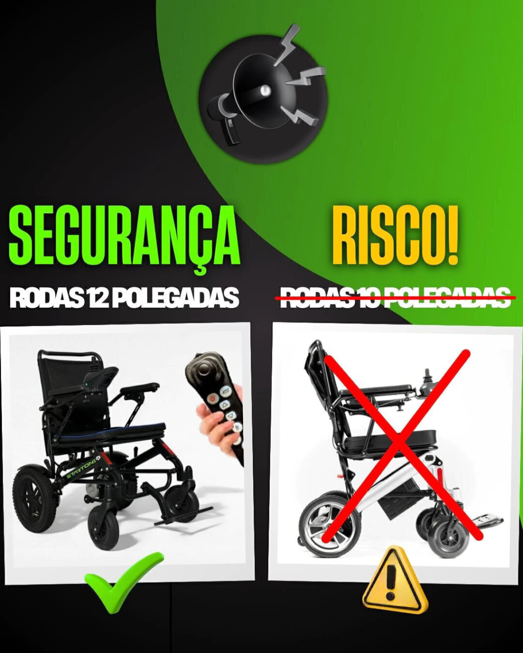 Compacta, dobrável e equipada com controle remoto inteligente, é ideal para quem deseja independência ou precisa de auxílio na condução por terceiros.