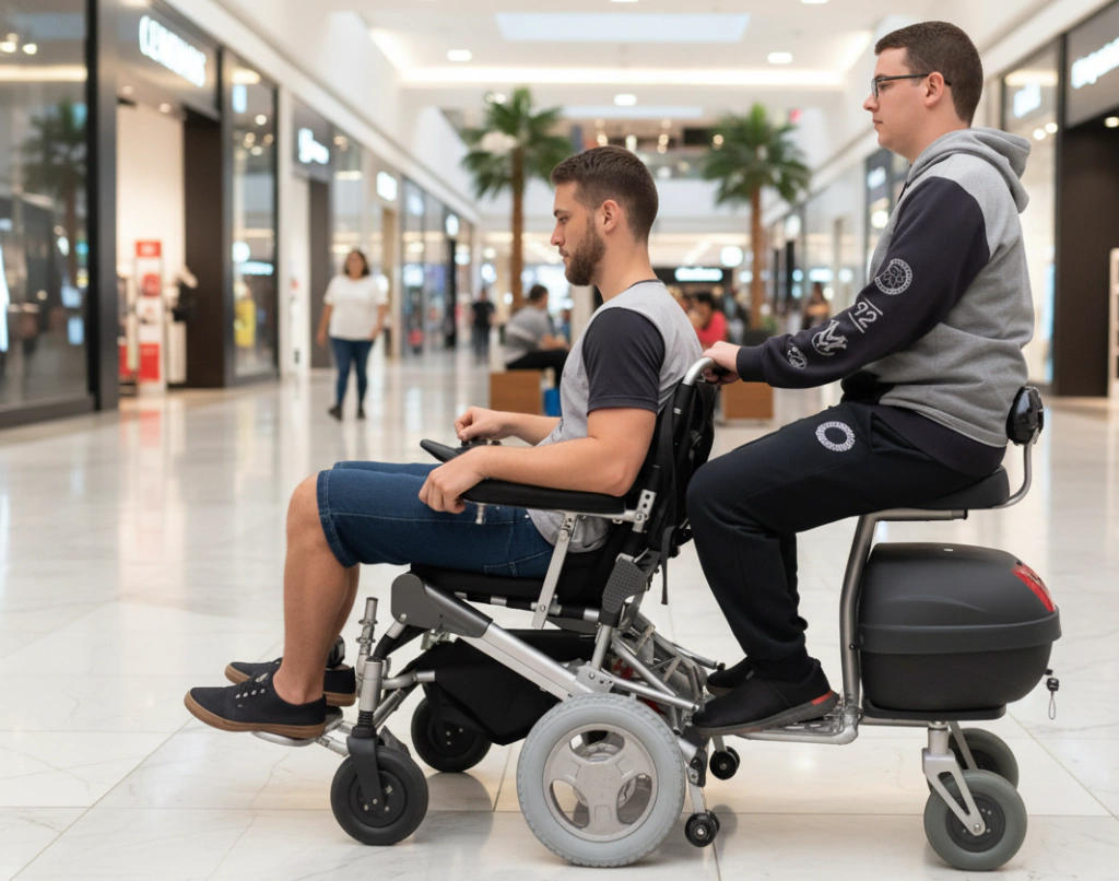 O RebKing Divinità é um acessório inovador que transforma sua cadeira motorizada Divinità em um veículo multifuncional, permitindo o transporte de até duas pessoas e oferecendo ainda um baú traseiro de 28 litros para carregar compras ou itens pessoais.